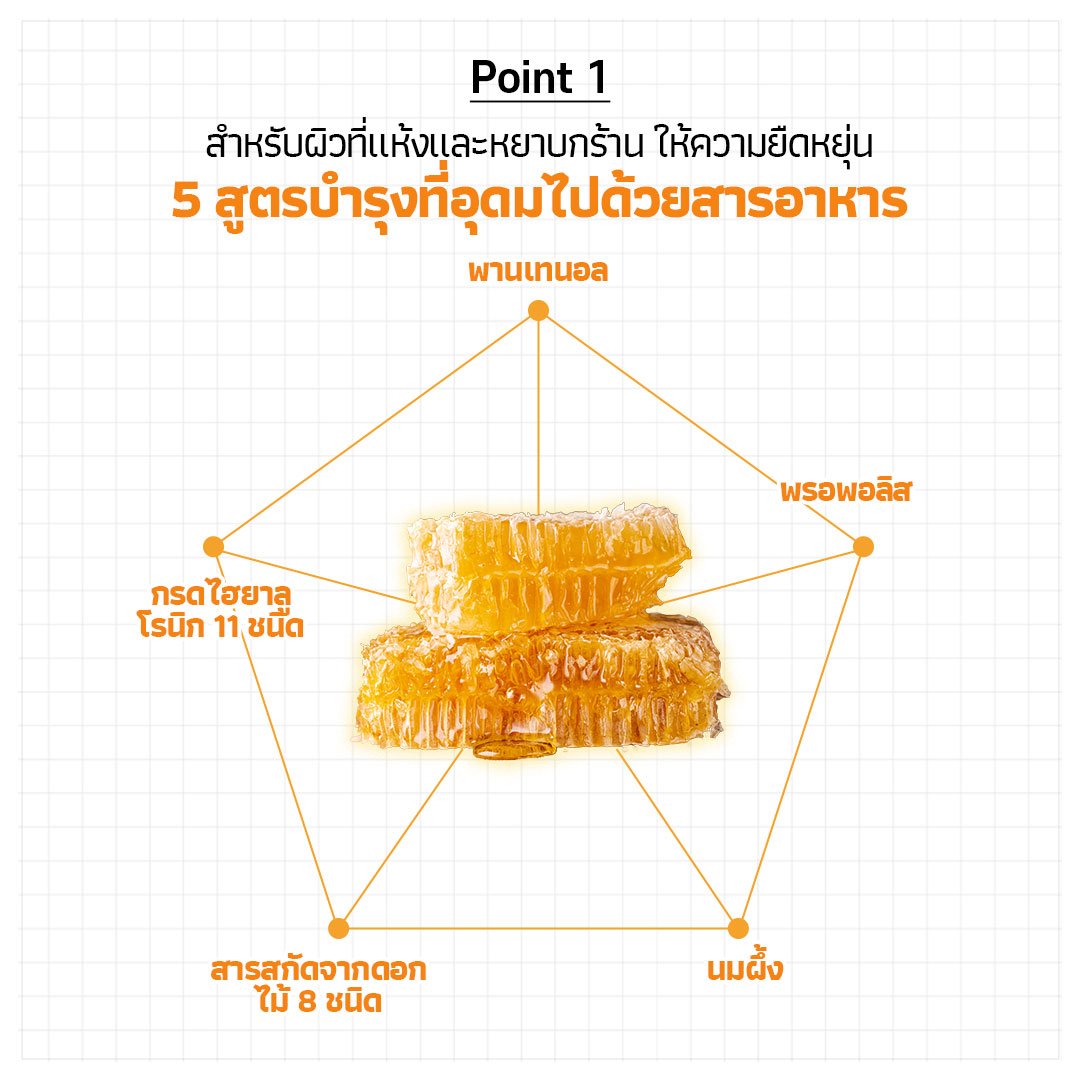 Ingredients : Honey,Propolis extract,Jojoba oil,Macadamia nut oil,Sunflower seed oil,Hazelnut seed oil,Bee venom.